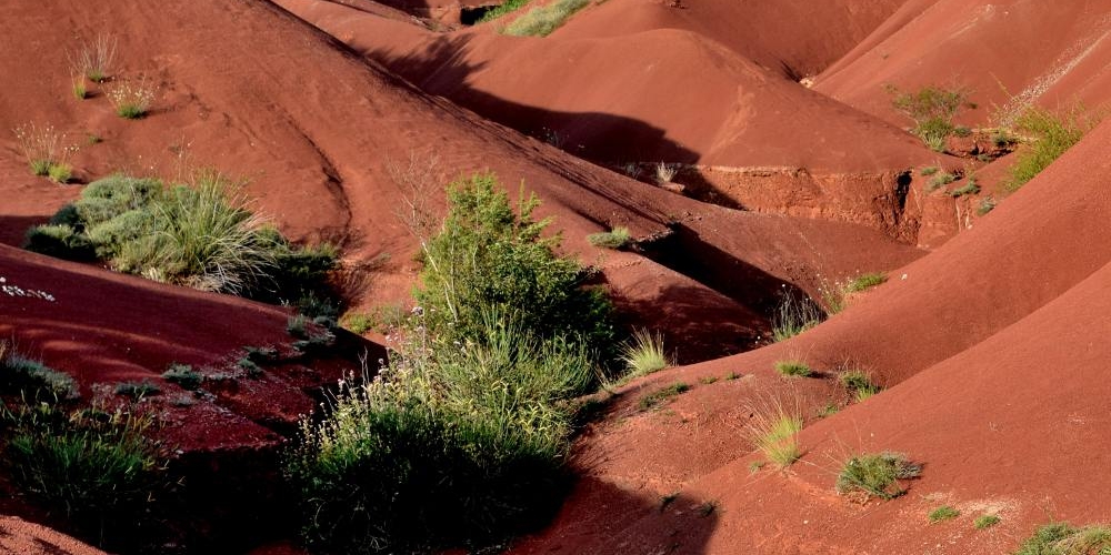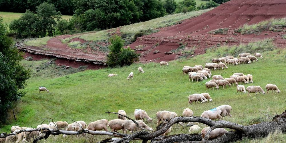 En période de sécheresse le Rougier de Camarès peut prendre des airs de désert, mais généralement c’est un mélange de vert et de rouge qui domine sur ses grandes étendues et, dans les villages de nombreuses constructions ont été édifiées à partir du grés rose de la région. Dans les secteurs non cultivées (pentes, affleurements rocheux…) ou d’élevage, la faune et la flore d’affinité méditerranéenne sont très diversifiées.   Photos : Jean-Claude Charrié